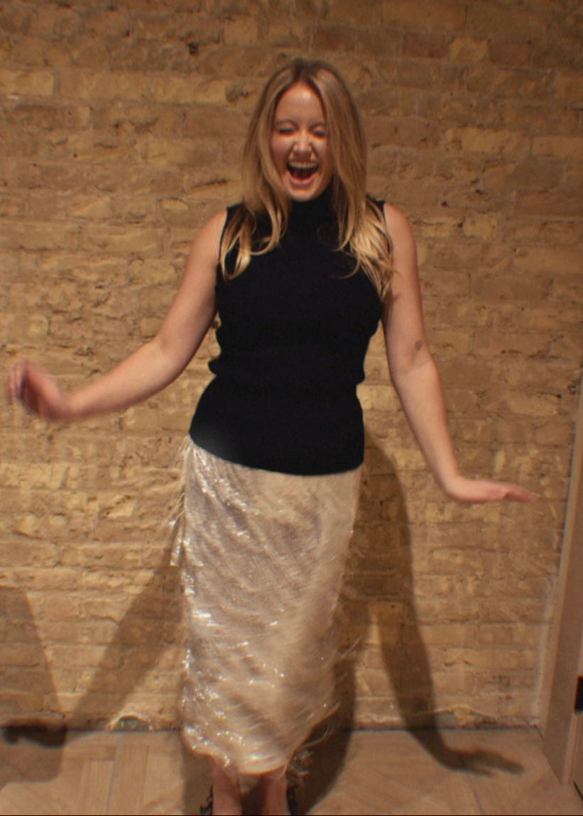 Satin Knit Top with Mock Neck