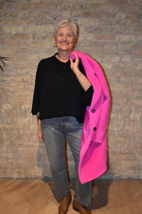 Flowy Dolman Sleeve Blouse With Self-Covering Buttons -